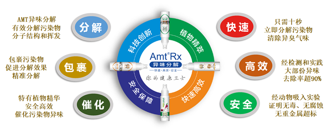 广东汀大在十多年环境空气污染治理研究中,发现空气化学污染主要来源于污染物挥发特性,造成环境空气污染,而苯系物污染难于治理,主要原因是苯系物分子结构是较为稳定环状分子结构。通过分析研究,确定以分解污染物的分子结构和挥发性为主要解决方向, 将会对多种异臭污染物治理具有广泛的市场需求应用,同时必须注意产品必需具备使用安全特性,不能带来二次污染。公司从过往植物研究中,发现160多种植物具有异味分解清除效能,通过十多年不断试验,改进萃取工艺技术和筛选组合,终于在2019年成功发明AMT异味分解技术,采用该技术产品经广东微生物检测中心检测证明对常见化学污染物治理祛除率大部份超过90%,对苯系物祛除率超过92.8%以上,实现快速安全解决苯系物治理世界难题,并且产品经动物吸入实验证明安全无毒、无腐蚀和无重金属超标,等产品应用安全问题。同时在现实治理即可体验“只需十秒立即见效”神奇效果,能快速、高效、安全、便捷,解决各种异臭气味污染治理问题,使产品广泛适用于装修污染、室内和车内异臭污染、异臭排放等污染治理,为环境污染治理和人类健康作出巨大贡献。