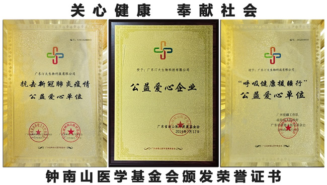 一场席卷全球的新冠肺炎疫情,牵动全国人民共同抗击新冠疫情大行动,2020年春节广东汀大为支援武汉人民抗疫,大年初二全体留莞人员回公司加班生产,为钟南山医学基金会捐献一大批抗疫物资,支持武汉抗疫工作,受到钟南山医学基金会和政府表彰。正是广东汀大公司以科研为社会服务,关注健康奉献社会的企业责任,使广东汀大生物科技有限公司一直以来默默奉献,赢行社会的认同和赞赏。