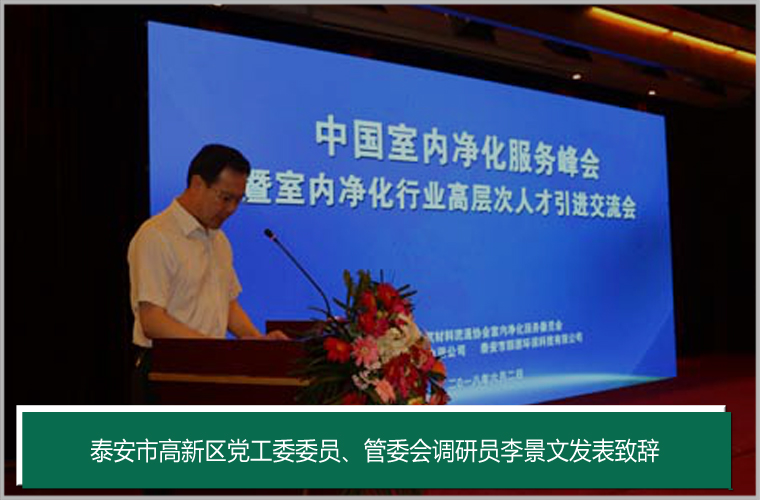 会议首先由泰安市高新区党工委委员、管委会调研员李景文致辞,他对来自全国各地的参会嘉宾表示欢迎,并表示高新区政府将大力支持生态环保产业发展,为泰安市居民创造绿色的生活环境。