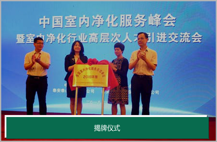 最后,由金彩汇协会副秘书长冯斯静,协会室内净化服务委员会主席贾敏,泰安市高新区党工委委员、管委会调研员李景文,以及泰安丽源集团总经理闫钦来一起为“2018年度全国室内净化服务培训示范单位”进行揭牌。