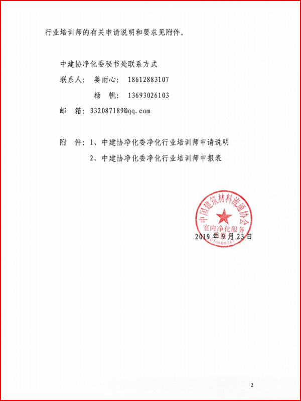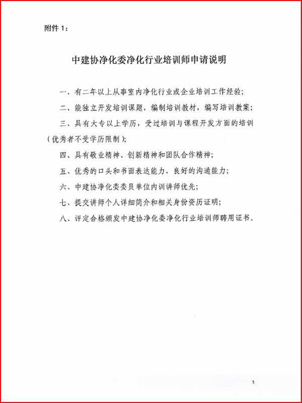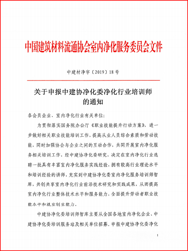关于申报中建协净化委净化行业培训师通知