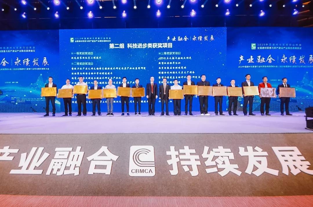 上午还进行了2019中国建材与家居行业科学技术奖颁奖大会,金彩汇副总经济师尹月晓宣读了《关于表彰2019年度中国建材与家居行业科学技术奖获奖项目和个人的决定》,2019年度共评选出获奖项目共116项,其中基础科技类9项,科技进步类21项,技术创新类61项,技术转化类25项。