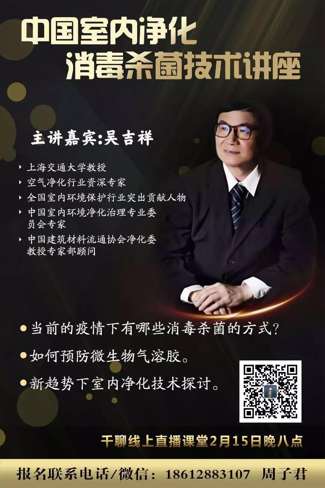 疫情严峻,为普及科学防治,共克时艰,中建协净化委邀请上海交通大学吴吉祥教授于2月15日晚坐镇净化委千聊直播间,专业、系统、规范地传授消毒杀菌技术,广受两千余位参与人士好评。
