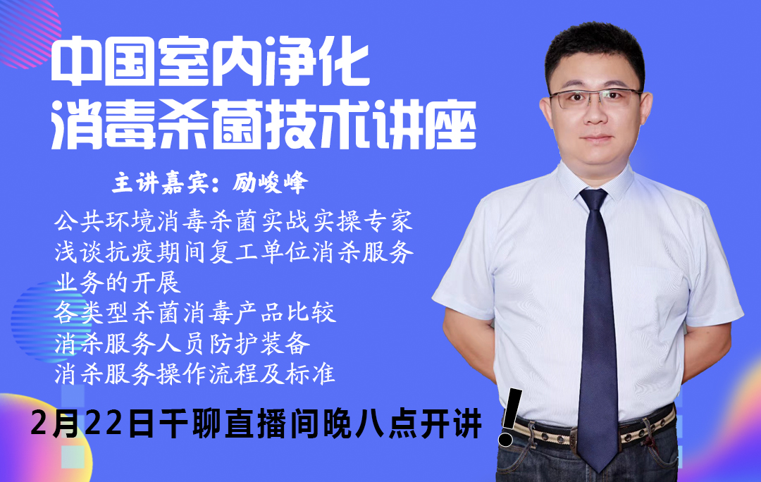 2月22日晚八点,第2期消毒杀菌课程讲座在净化委千聊直播间如期举办,由公共环境消毒杀菌实战实操专家励俊峰、黄裕彬老师担纲主讲嘉宾,深入浅出地分析了疫情下的市场机会,并在消毒产品对比、室内环境消杀操作规范及施工流程两板块上为听众输出优质的专业内容。