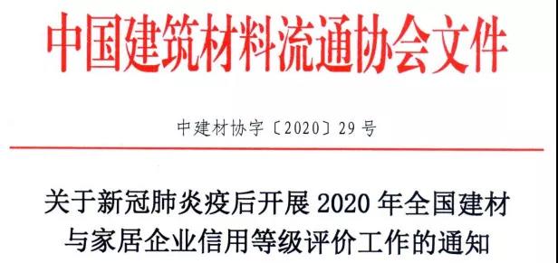 现将2020年全国建材与家居企业信用等级评价工作具体事项通知如下: