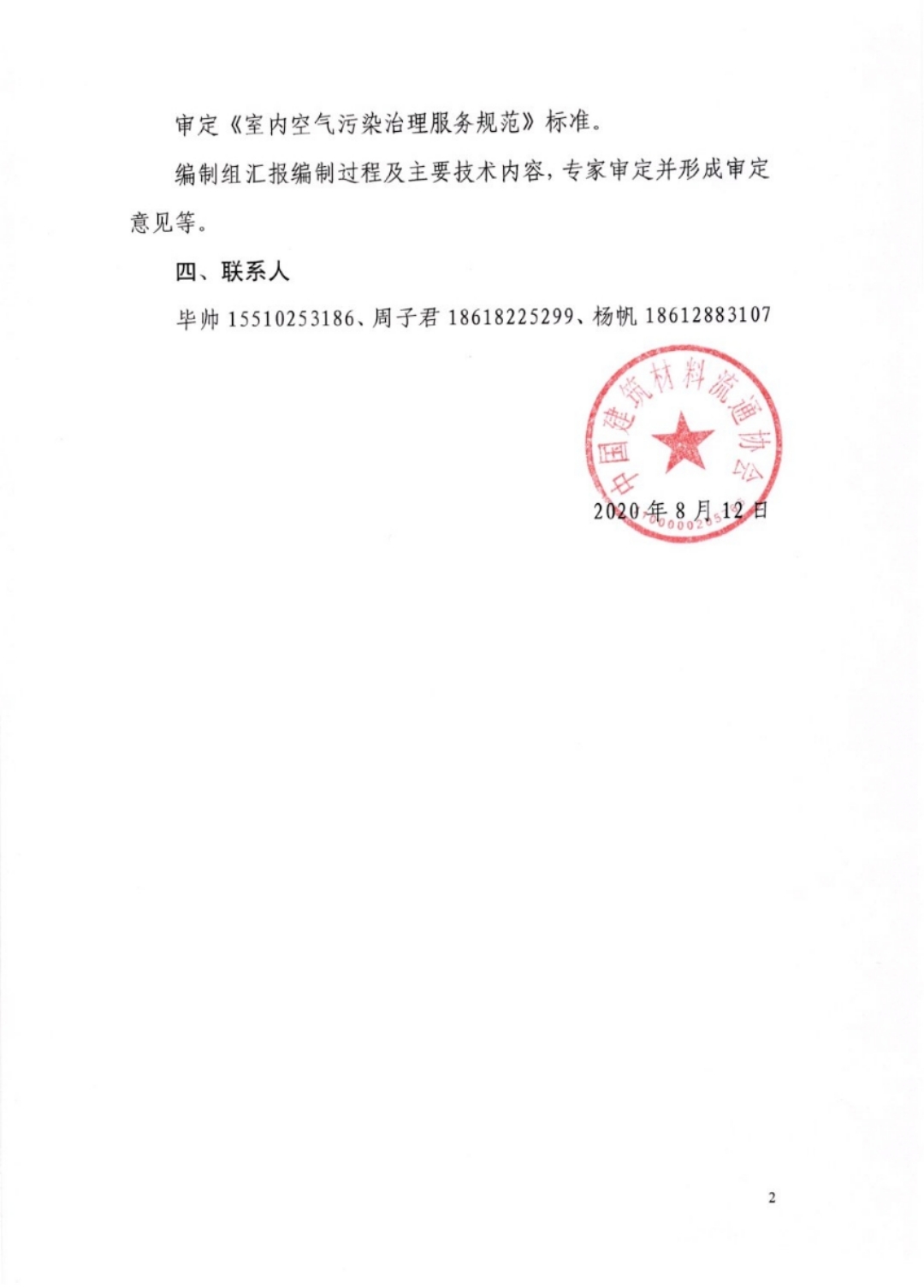 中建协关于召开《室内空气污染治理服务规范》 标准审定会的通知