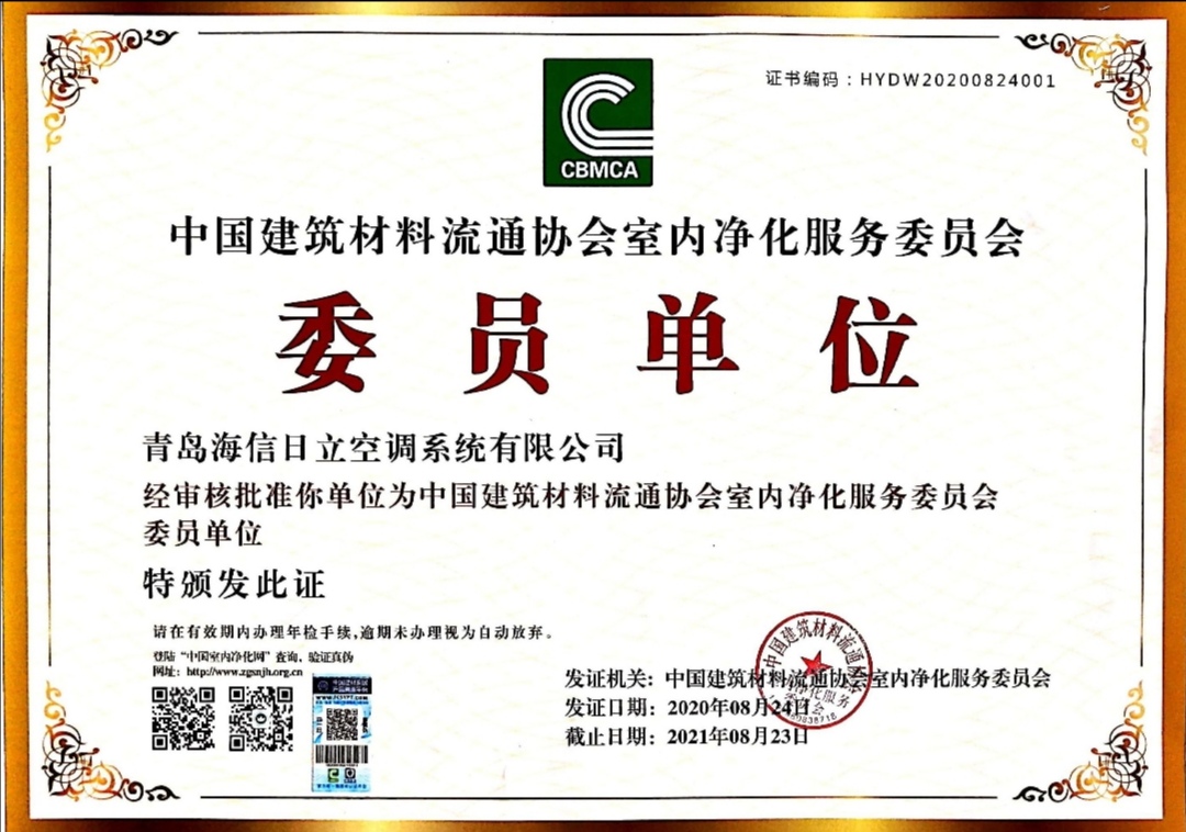 热烈欢迎青岛海信日立空调系统有限公司加入金彩汇室内净化服务委员会