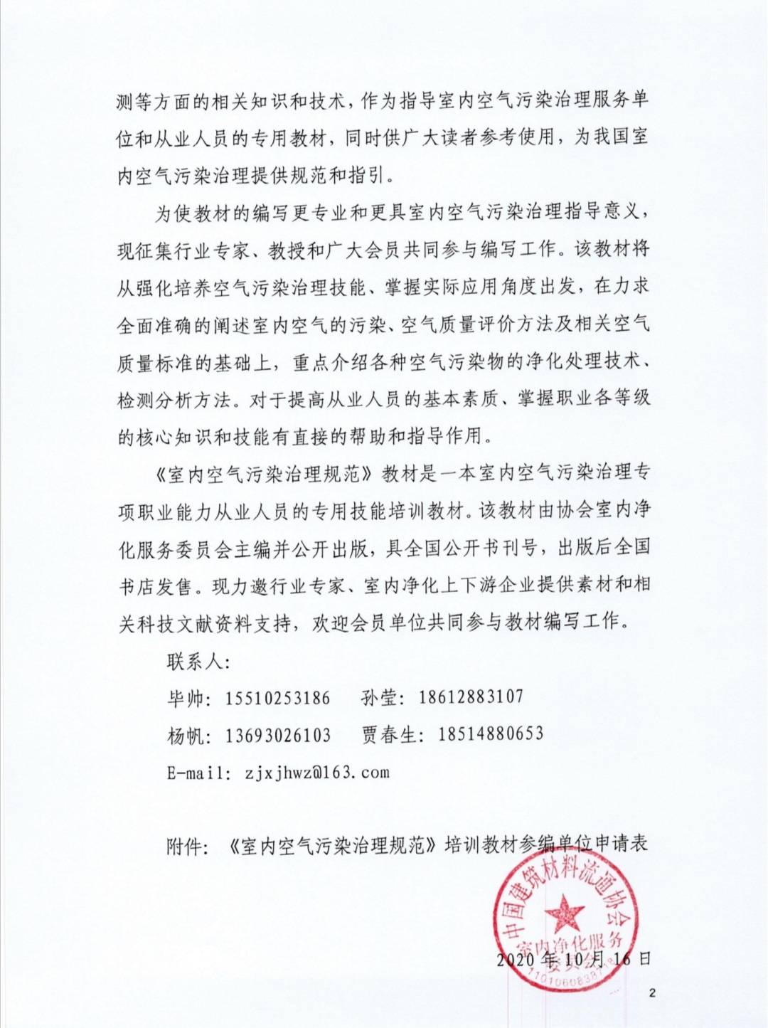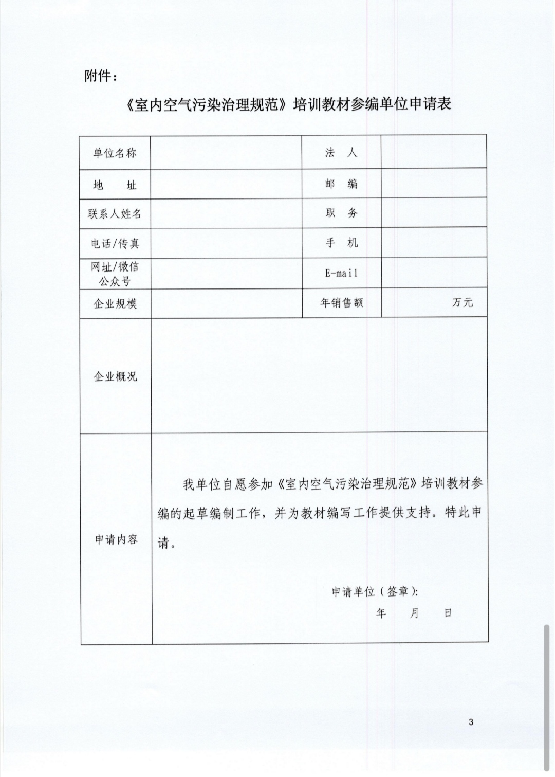 中建协净化委关于征集会员及相关单位参与《室内空气污染治理规范》教材编写工作的通知