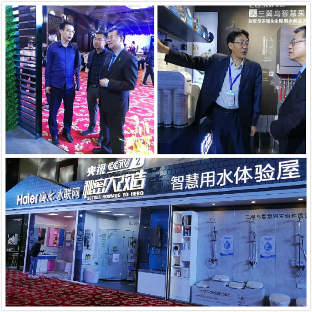 会前,秦占学会长在海尔袁红刚总的陪同下,参观了央视《秘密大改造》场景体验屋——智慧采暖区、智慧用水区、美肤浴室、畅享浴室四间体验区,并对每个展区产品性能进行了详细的交流,该展区逐一彰显三翼鸟定制化、个性化的智慧场景。