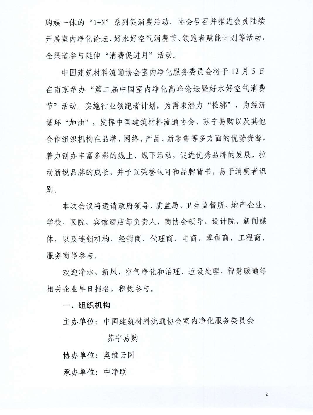 关于举办第二届中国室内净化高峰论坛暨好水好空气消费节的通知