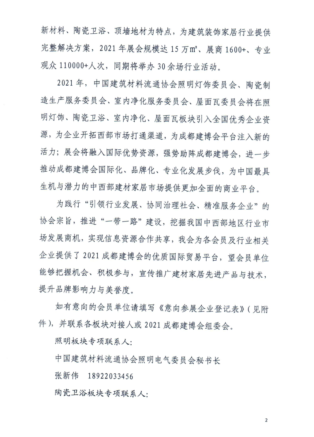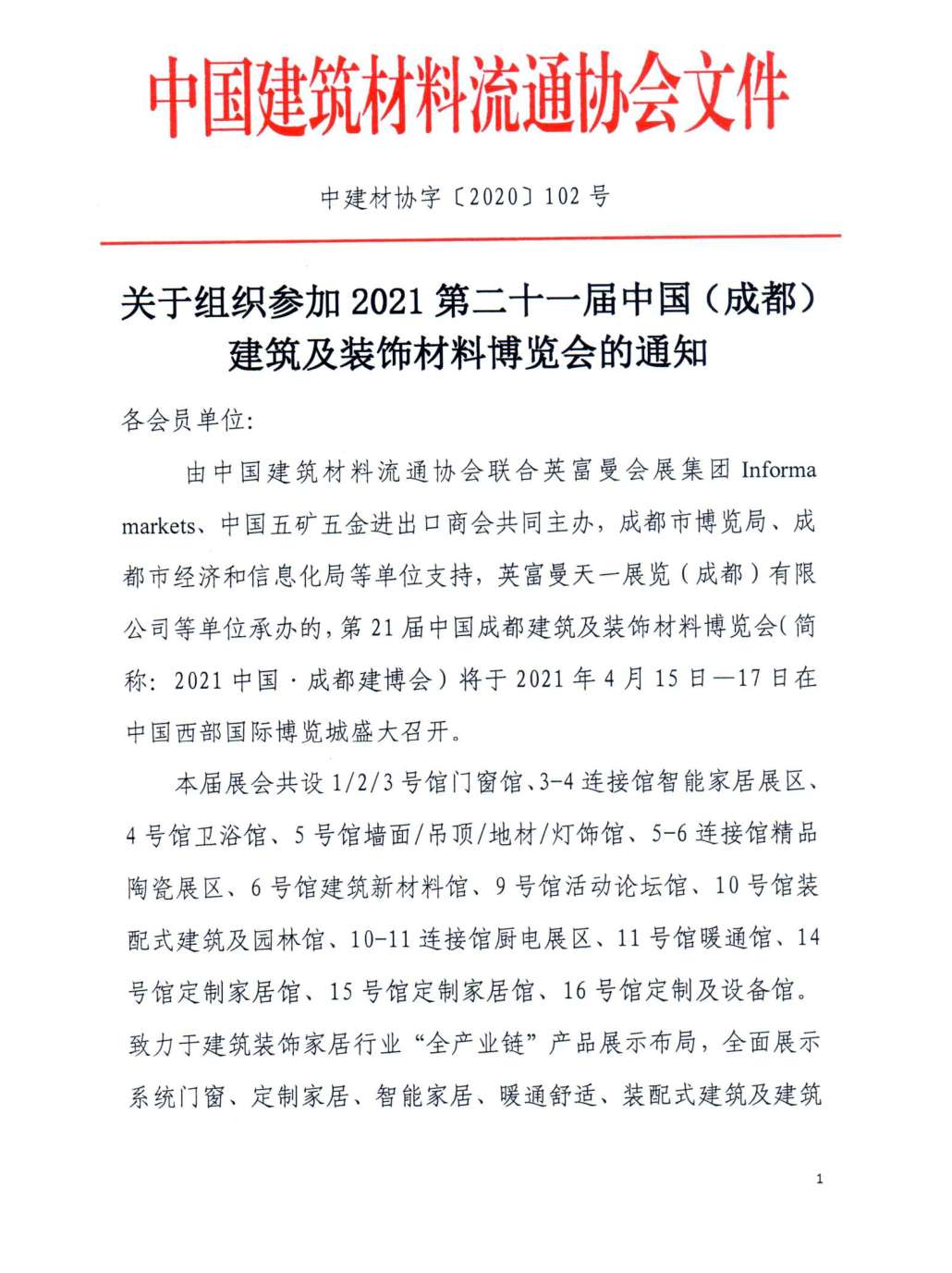 关于组织参加2021第二十一届中国(成都)建筑及装饰材料博览会的通知