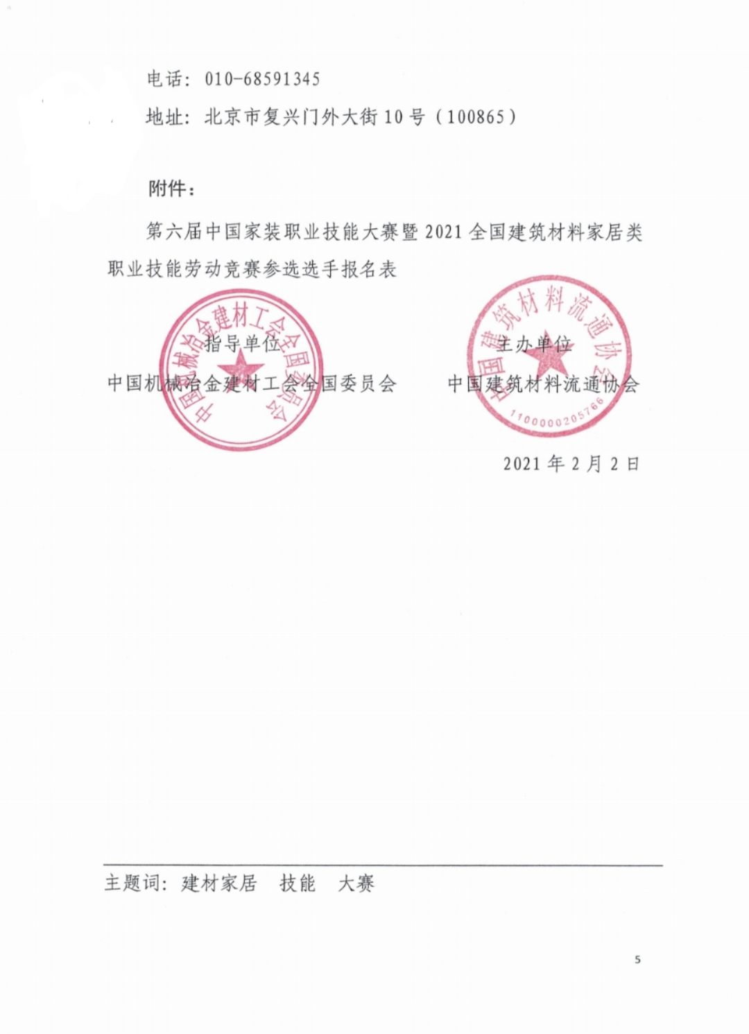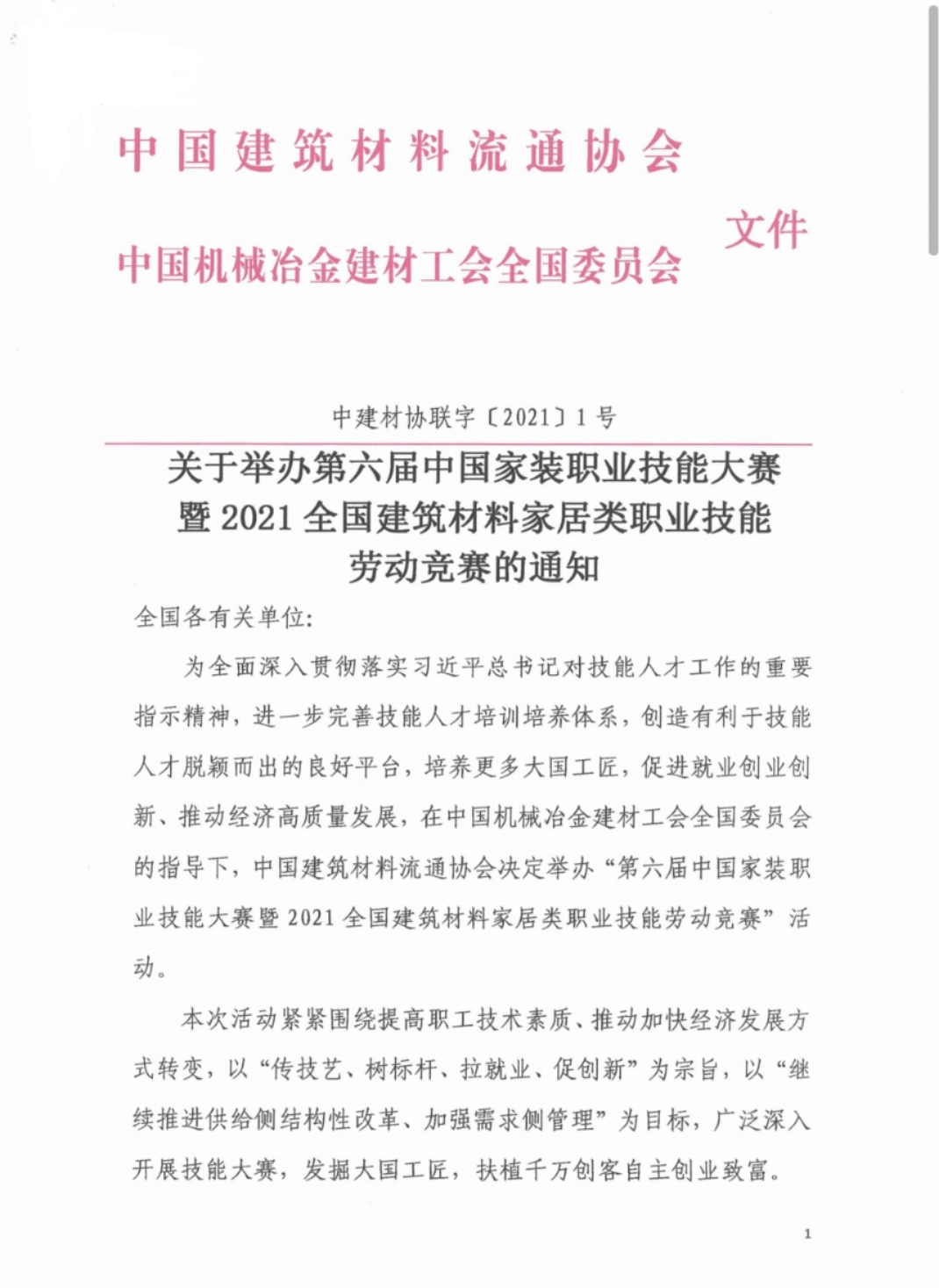 关于举办第六届中国家装职业技能大赛暨2021全国建筑材料家居类职业技能劳动竞赛的通知