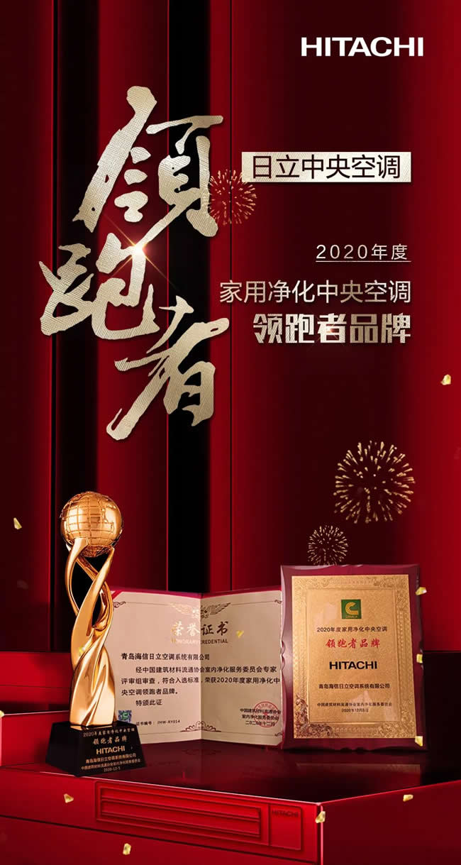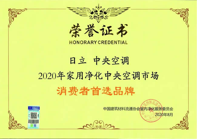 2020年,日立中央空调凭借在行业中的引领力量与健康家居领域的突出贡献,成为家用净化中央空调市场消费者首选品牌,并荣获《2020年家用净化中央空调消费者首选品牌》证书。