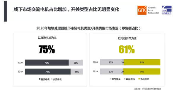 根据GfK中怡康监测数据显示,交流电机的零售额占比同比2019年略有增加,但直流电机仍为主导,占75%,开关类型零售额占比则无明显变化。