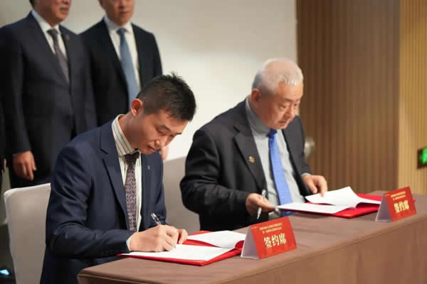 会议现场,深圳康风环境科技发展有限公司李海镛总经理(左一)与深圳交响乐团团长聂冰(左二)现场签约