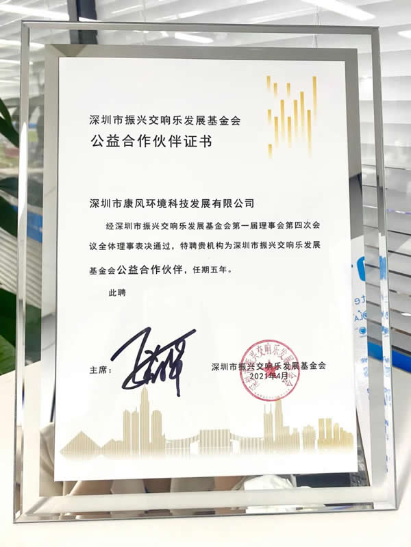 深圳市康风环境科技发展有限公司成为深圳市振兴交响乐发展基金会公益合作伙伴