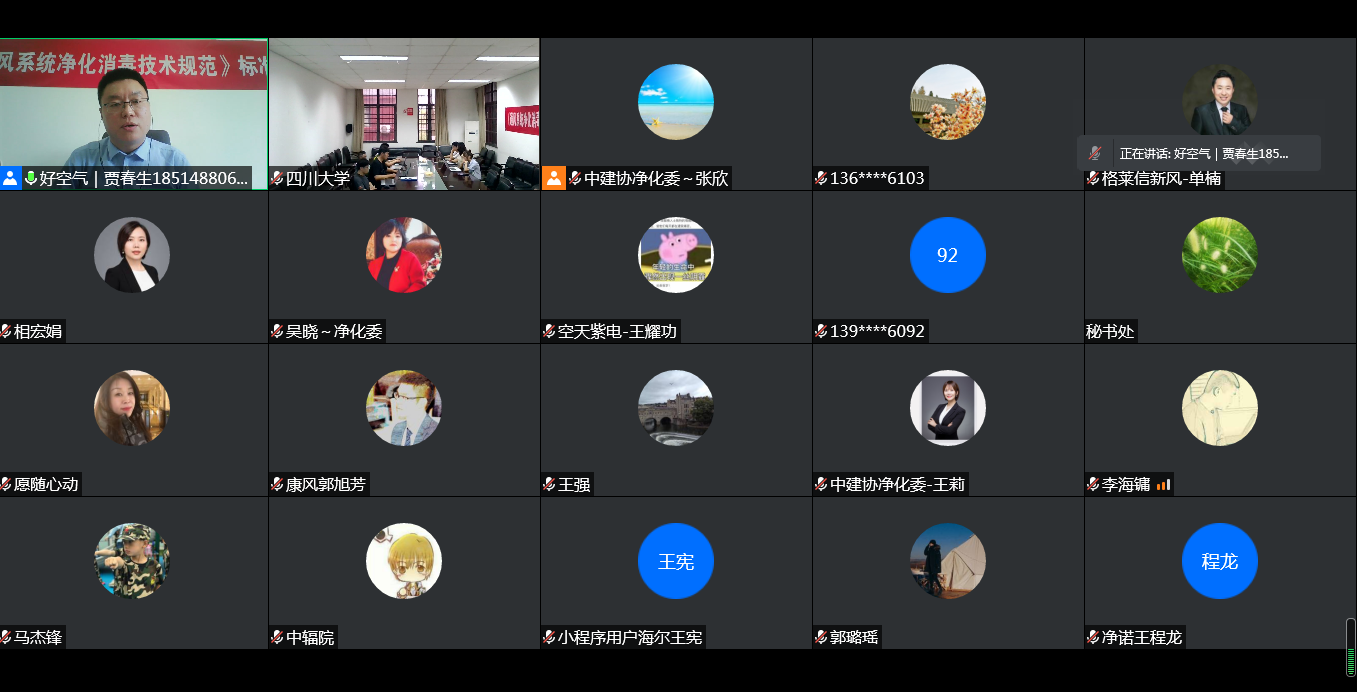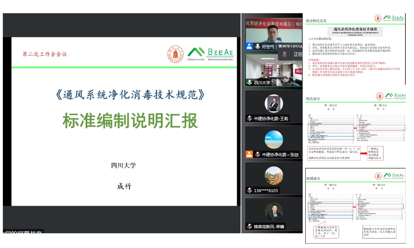 本次会议设立了2个线下会场,分别是金彩汇室内净化服务委员会秘书处办公室和四川大学建筑与环境学院会议室,进行了本次标准的汇报。