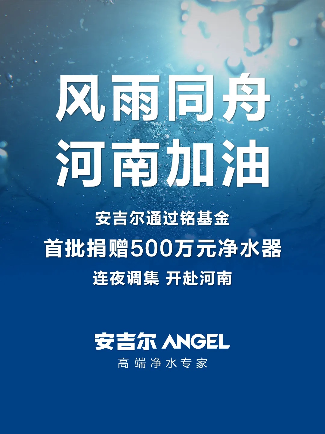 近日,河南多个地区遭受极端强降雨袭击,特大洪涝灾情牵动着全国人民的心。经河南省青少年发展基金会发出的物资救援需求,得知救灾工作中急需净水器及净水物资的情况下,安吉尔集团第一时间联合深圳市铭基金公益基金会,连夜通过深圳市慈善会向河南多地灾区捐赠首批价值超500万元的净水器物资提供支持。