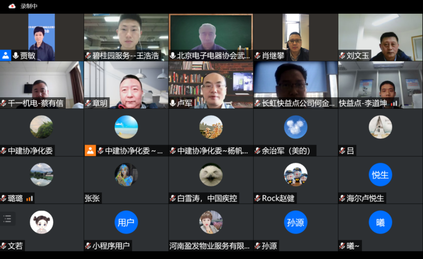 4月13日,金彩汇室内净化服务委员会在线上组织召开了《中央空调清洗消毒及运维》标准启动会暨第一次工作会议。金彩汇室内净化服务委员会主席贾敏、副主席贾春生、中国疾控中心环境相关所原副所长白雪涛、北京电子电器协会会长武建宝、秘书长刘文玉、重庆大学教授卢军、重庆大学兼职硕导/高级工程师肖继攀、中国人民解放军陆军勤务学院高级工程师杨嘉及编制组全体成员参加了本次会议。