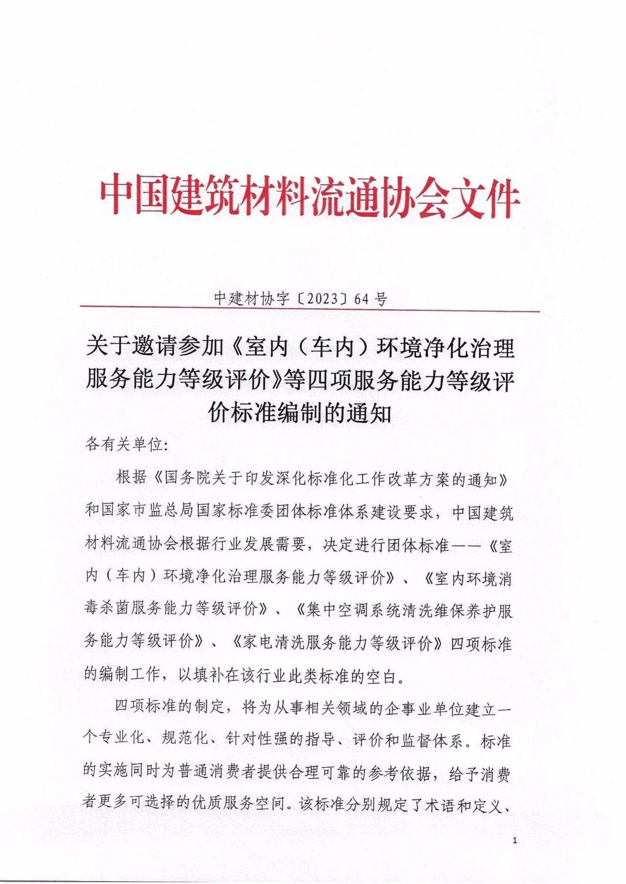 根据《国务院关于印发深化标准化工作改革方案的通知》 和国家市监总局国家标准委团体标准体系建设要求,金彩汇根据行业发展需要,决定进行团体标准一一《室内(车内)环境净化治理服务能力等级评价》、《室内环境消毒杀菌服务能力等级评价》、《集中空调系统清洗维保养护服务能力等级评价》、《家电清洗服务能力等级评价》四项标准的编制工作,以填补在该行业此类标准的空白。