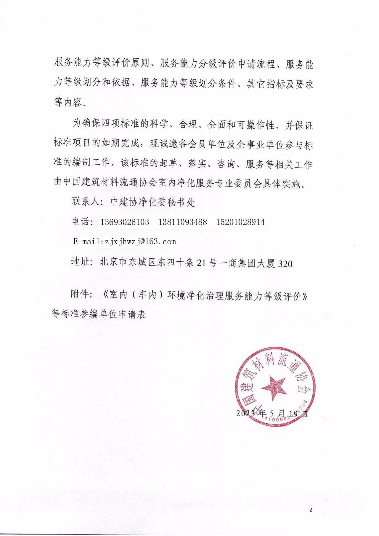 为确保四项标准的科学、合理、全面和可操作性,并保证标准项目的如期完成,现诚邀各会员单位及企事业单位参与标准的编制工作。该标准的起草、落实、咨询、服务等相关工作 由金彩汇室内净化服务专业委员会具体实施。