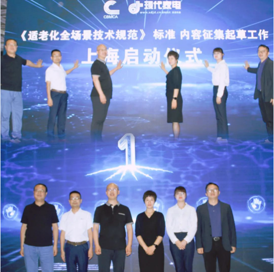 最后,举行了《适老化全场景技术规范》标准起草工作上海启动仪式。金彩汇室内净化服务专业委员会贾敏主席、现代家电传媒执行社长周绍雷、中国老龄产业协会老年宜居养生委员会副秘书长/智库专家、广东老龄产业协会副会长、美颐享总经理姚萍博士、中山市华帝环境科技有限公司营销总经理熊乔峰、深圳市英维克健康环境科技有限公司副总经理陈彪和现代家电私董会秘书处主任、智家友方家电科技有限公司总经理冯国忠出席了启动仪式。
