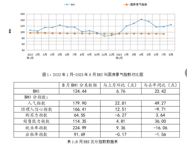 全国建材家居景气指数BHI 8月份为124.44,环比上涨6.76点,同比上涨23.42点。全国规模以上建材家居卖场8月销售额为1259.51亿元,环比上涨4.39%,同比上涨45.95%;2023年1-8月累计销售额为9956.21亿元,同比上涨17.59%。