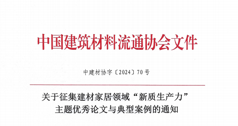 协会将对征集的论文和案例组织专家进行筛选,并选取部分典型案例及论文进行公开发表,收录于《2024建材家居领域新质生产力优秀项目汇编》(暂命名)(由《中国建设科技出版社》正式出版)。