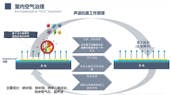 公司独家的声波抗菌是一种先进绿色健康消杀技术,可以运用在各场景的表面, 足以颠覆对现有以氯,醇,铵等做主要成分的化学消毒剂的认知。